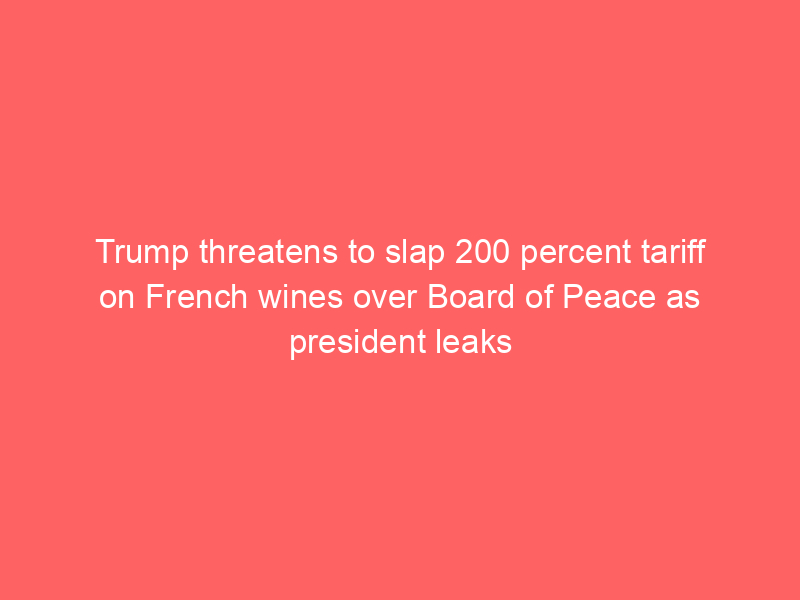 Trump threatens to slap 200 percent tariff on French wines over Board of Peace as president leaks text from MacronUncategorized Donald Trump threatened to hit France with a 200 percent tariff on champagne and wine Monday night before leaking a text message from Emmanuel Macron.