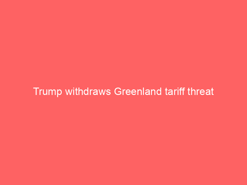Trump withdraws Greenland tariff threatWorld The U.S. President said that the U.S. and NATO had “formed the framework of a future deal with respect to Greenland and, in fact, the entire Arctic Region”.