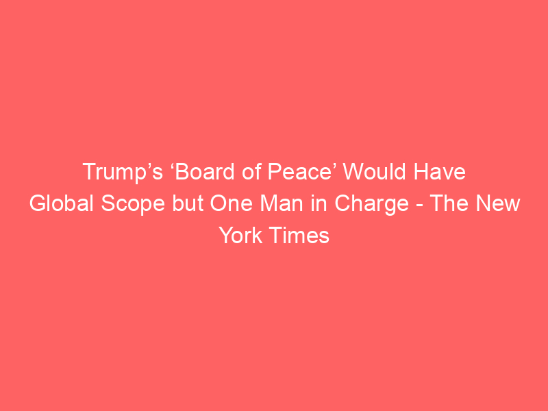 - Trump’s ‘Board of Peace’ Would Have Global Scope but One Man in Charge The New York Times