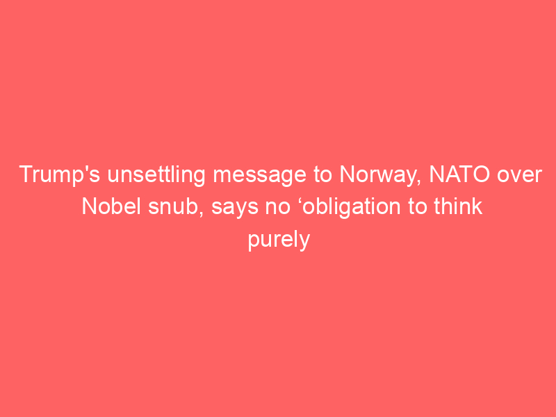 Trump’s unsettling message to Norway, NATO over Nobel snub, says no ‘obligation to think purely of peace’ | Report