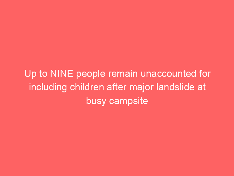 Up to NINE people remain unaccounted for including children after major landslide at busy campsiteUncategorized Authorities are still searching for up to nine people who are still missing 24 hours after a devastating landslide tore through a popular holiday park.
