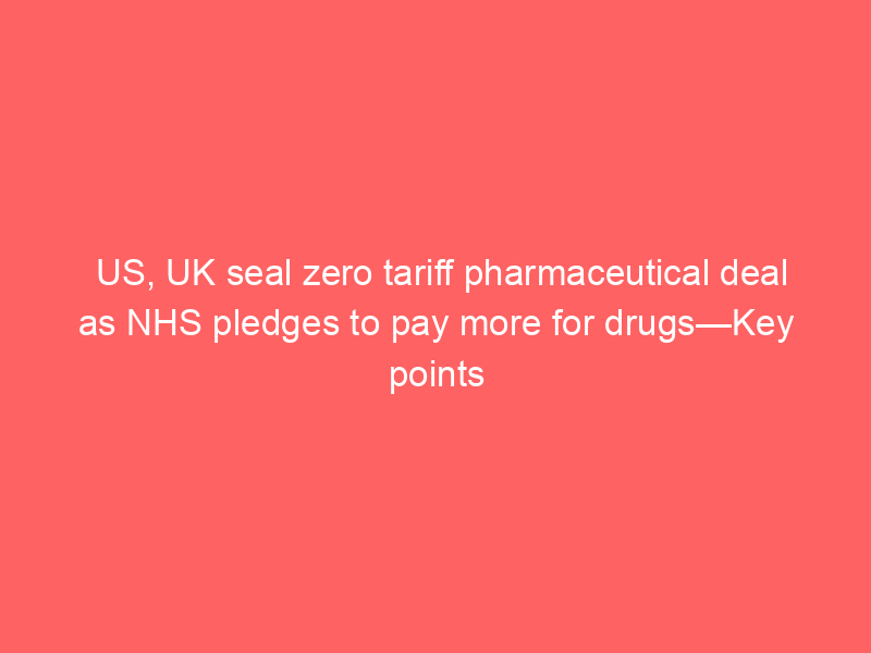 US, UK seal zero tariff pharmaceutical deal as NHS pledges to pay more for drugs—Key pointsUncategorizedAs part of the new deal, UK will be exempted from hefty US tariffs imposed on pharma imports that entered force on October 1