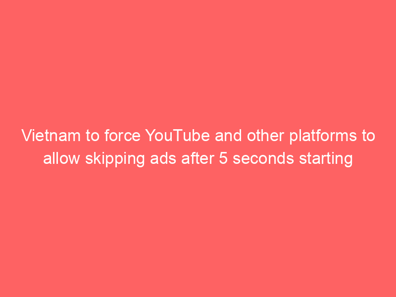 Vietnam is introducing a new law requiring digital platforms like YouTube to allow users to skip ads within five seconds. This change, effective February 15, 2026, aims to create a better online experience. Previously unskippable ads will now be shorter or immediately dismissible. Platforms must also ensure clear ad controls and report illegal content promptly.
