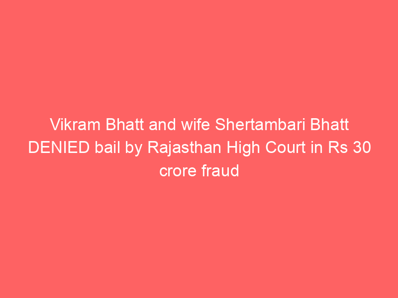 Rajasthan HC denies bail to filmmaker Vikram Bhatt and wife Shwetambari in ₹30 cr Udaipur fraud case. Court sees deliberate fund diversion beyond contract breach, per Justice Sameer Jain. Arrested in Mumbai, prior bail rejected. Police probe continues. Complainant Dr. Ajay Murdia alleges ₹30-40 cr loss on unmade films.