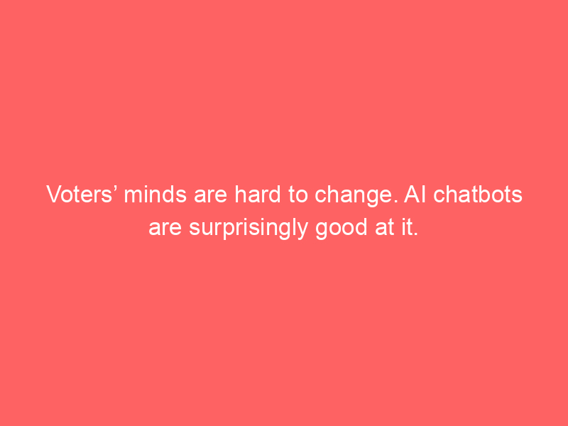 Voters’ minds are hard to change. AI chatbots are surprisingly good at it.UncategorizedNew research suggests AI chatbots can shift people’s political views more effectively than campaign ads on TV.