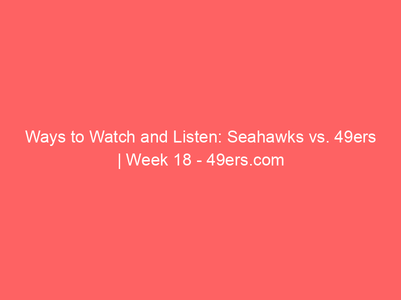 - Ways to Watch and Listen: Seahawks vs. 49ers | Week 18 49ers.com