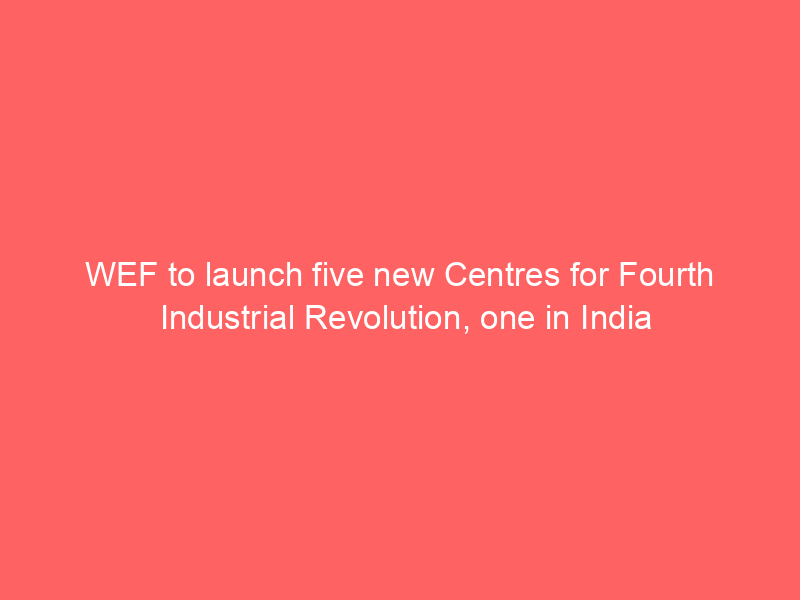 WEF to launch five new Centres for Fourth Industrial Revolution, one in IndiaEconomy The Fourth Industrial Revolution Network is a platform for multi-stakeholder collaboration, bringing together public and private sectors to help ensure emerging technologies deliver benefits for society while minimising risks