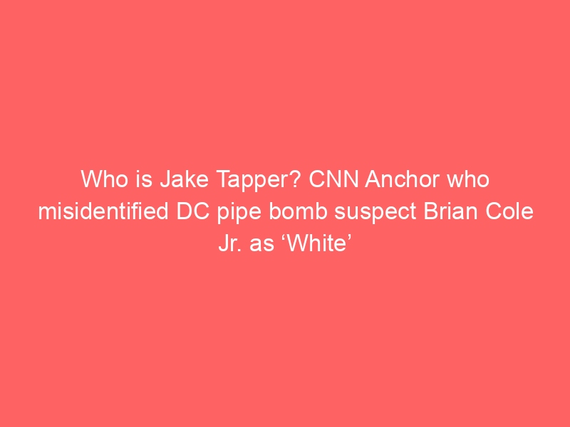 CNN’s Jake Tapper faced criticism for misidentifying DC pipe bomber Brian Cole Jr. as “white” on-air. He is CNN’s lead Washington anchor, Emmy-winning journalist, and bestselling author.