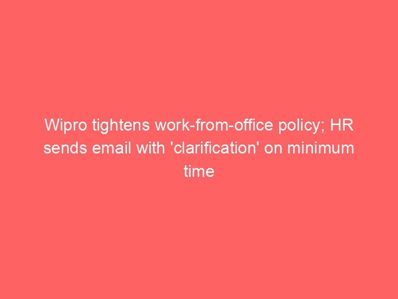 Wipro has tightened its work-from-office policy, mandating at least six hours in the office for three days a week, effective January 1. This change requires employees to complete their remaining 9.5 daily working hours from home. The company has also reduced the extra remote work facility to 12 days annually.